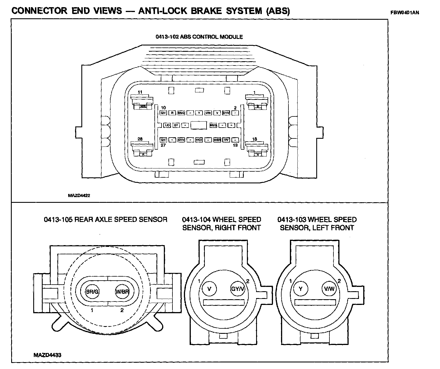 CONNECTOR END VIEWS - ANTI-LOCK BRAKE SYSTEM (ABS) (Part 1):