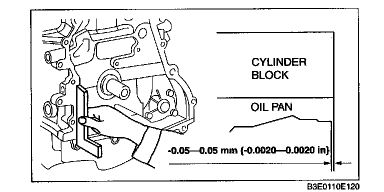 2. Use a square ruler to unite the oil pan and the cylinder block junction side on the engine front cover side.