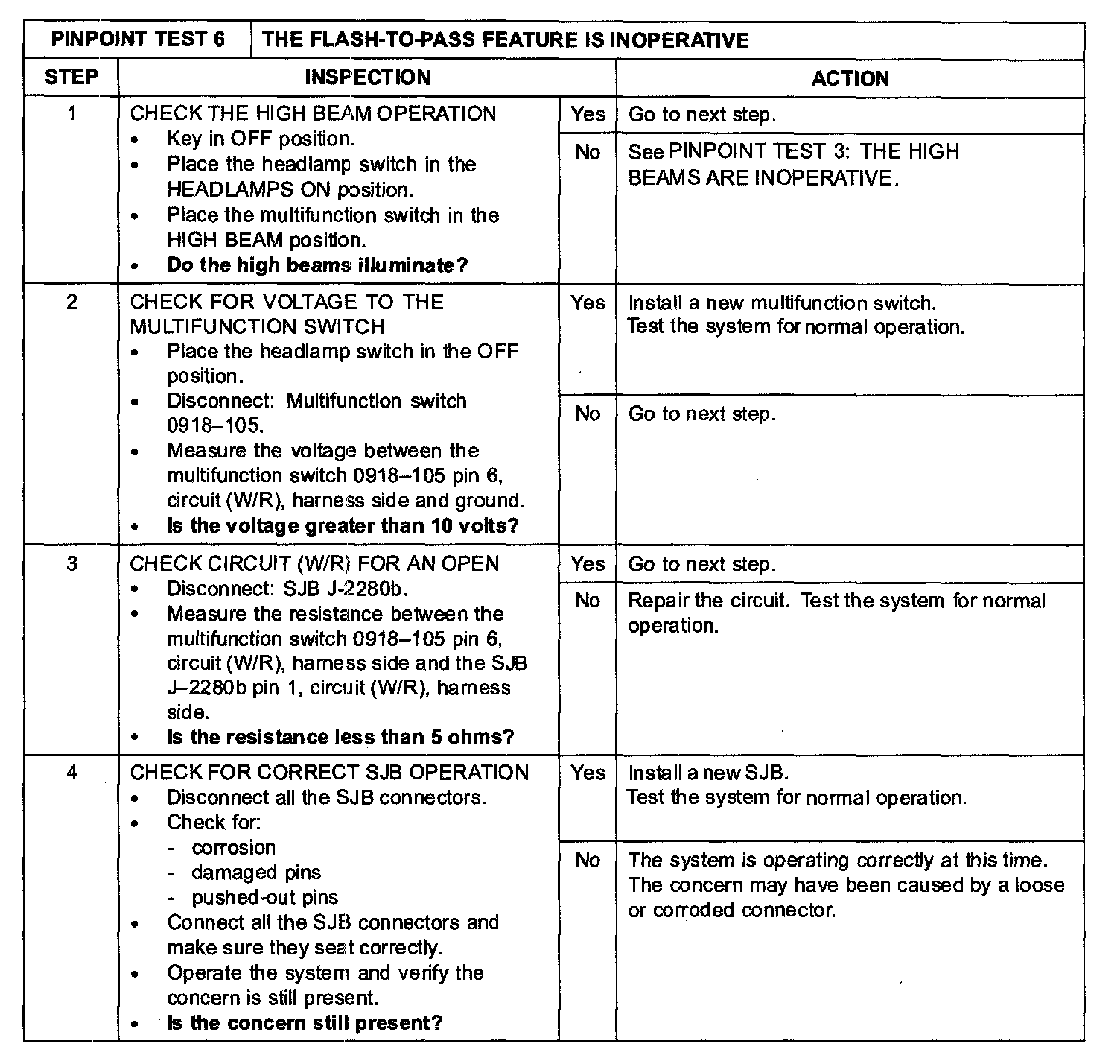 PINPOINT TEST 6: THE FLASH-TO-PASS FEATURE IS INOPERATIVEStep 1-Step 4: