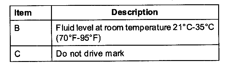 ^ The vehicle should not be driven if the fluid level indicator shows the fluid below the do not drive mark or internal failure could result.