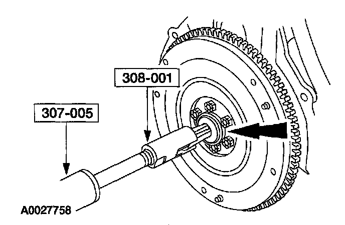 3. Using impact slide hammer SST (307-005) and pilot bearing remover SST (308-001) or equivalent, remove the pilot bearing from the crankshaft.