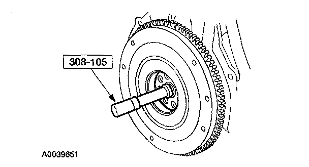 5. Using a soft-face hammer and the pilot bearing installer SST (308-105) or equivalent install the new transmission input shaft pilot bearing into the crankshaft.