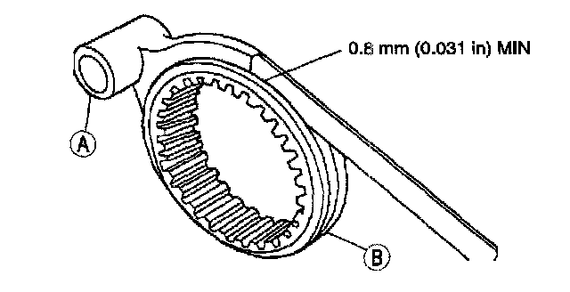 MANUAL TRANSMISSION SHIFT CONTROL HOUSING ASSEMBLY1. Check the contact surface of the (A) shift fork and (B) synchronizer sleeve for wear or damage.