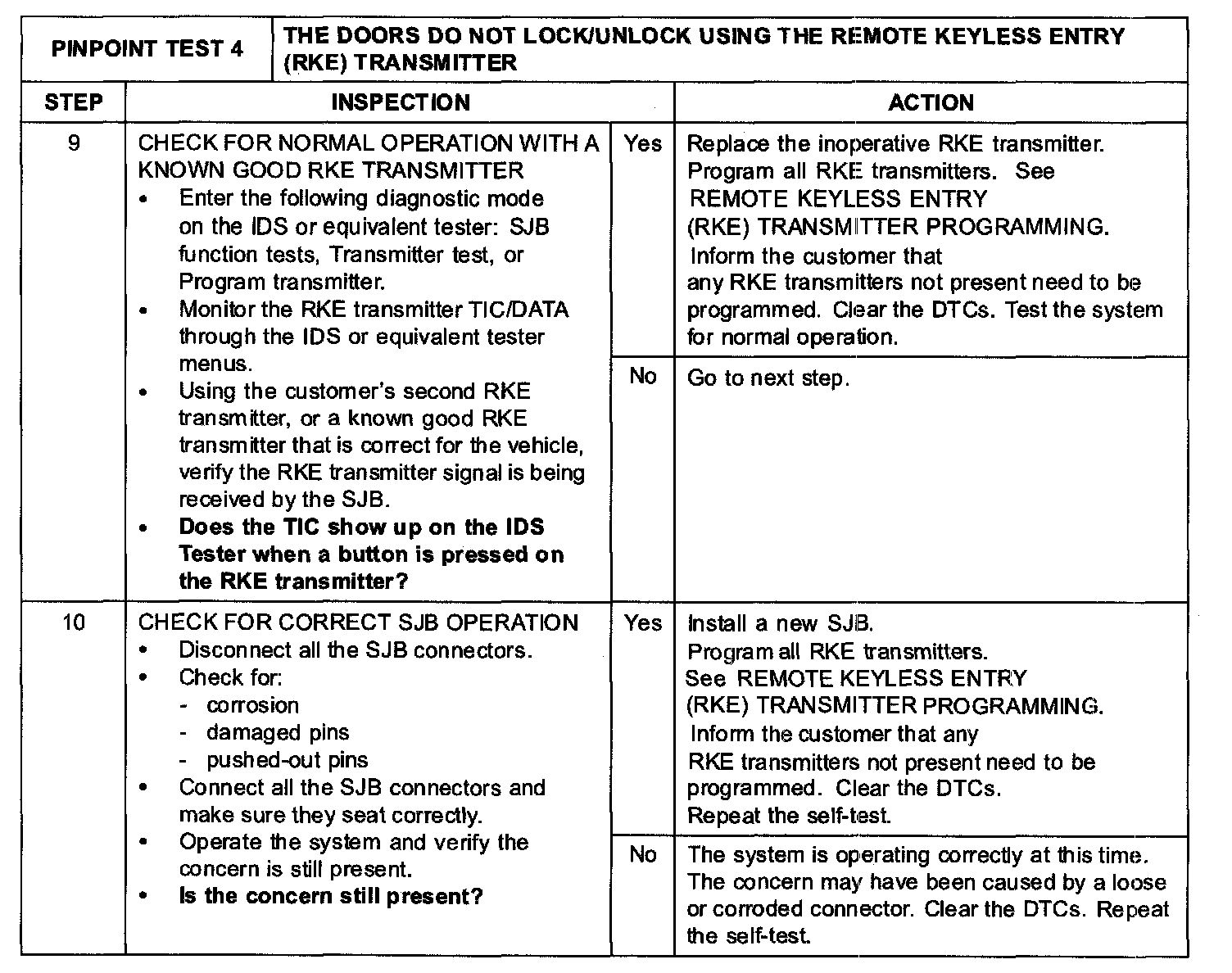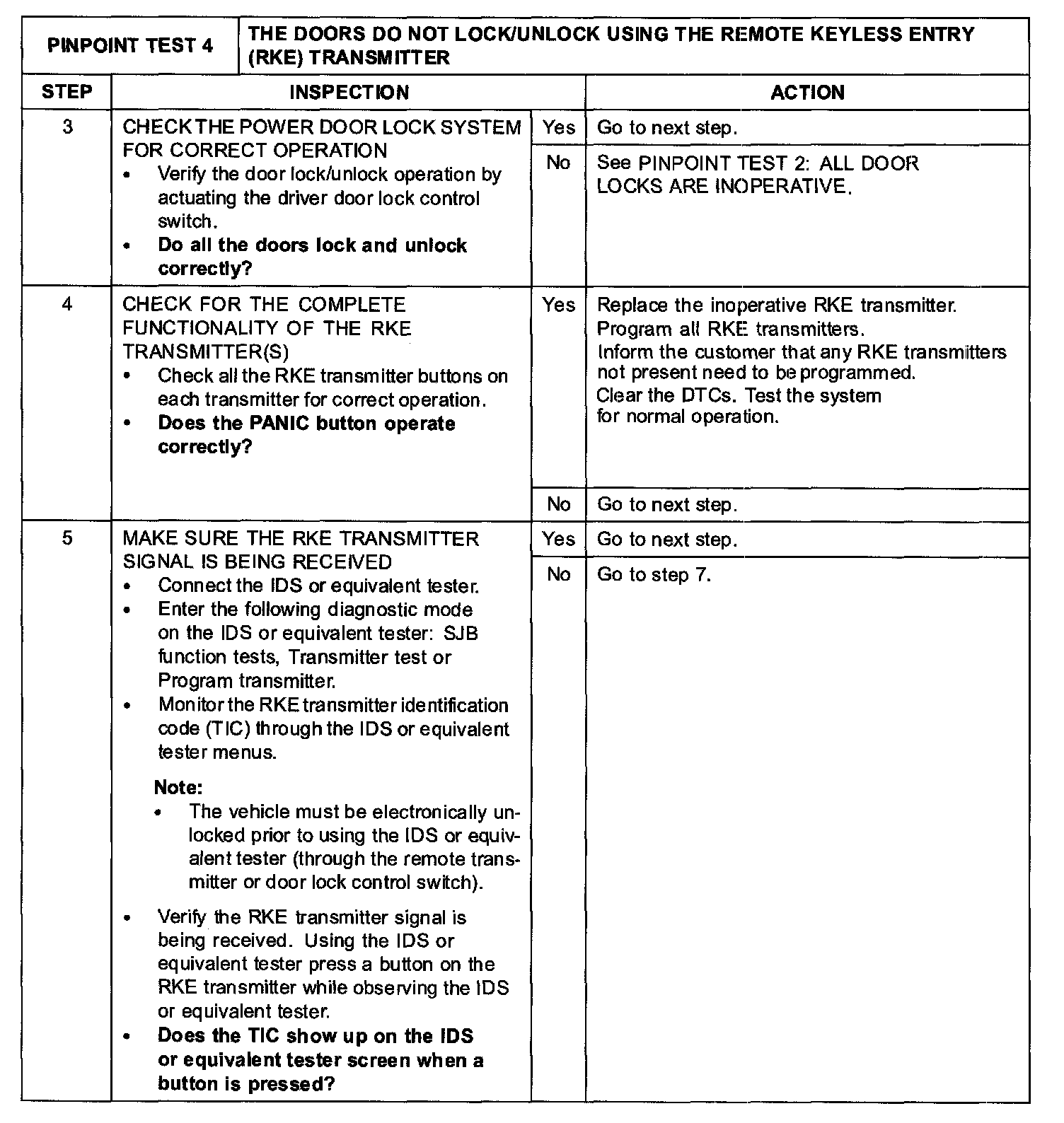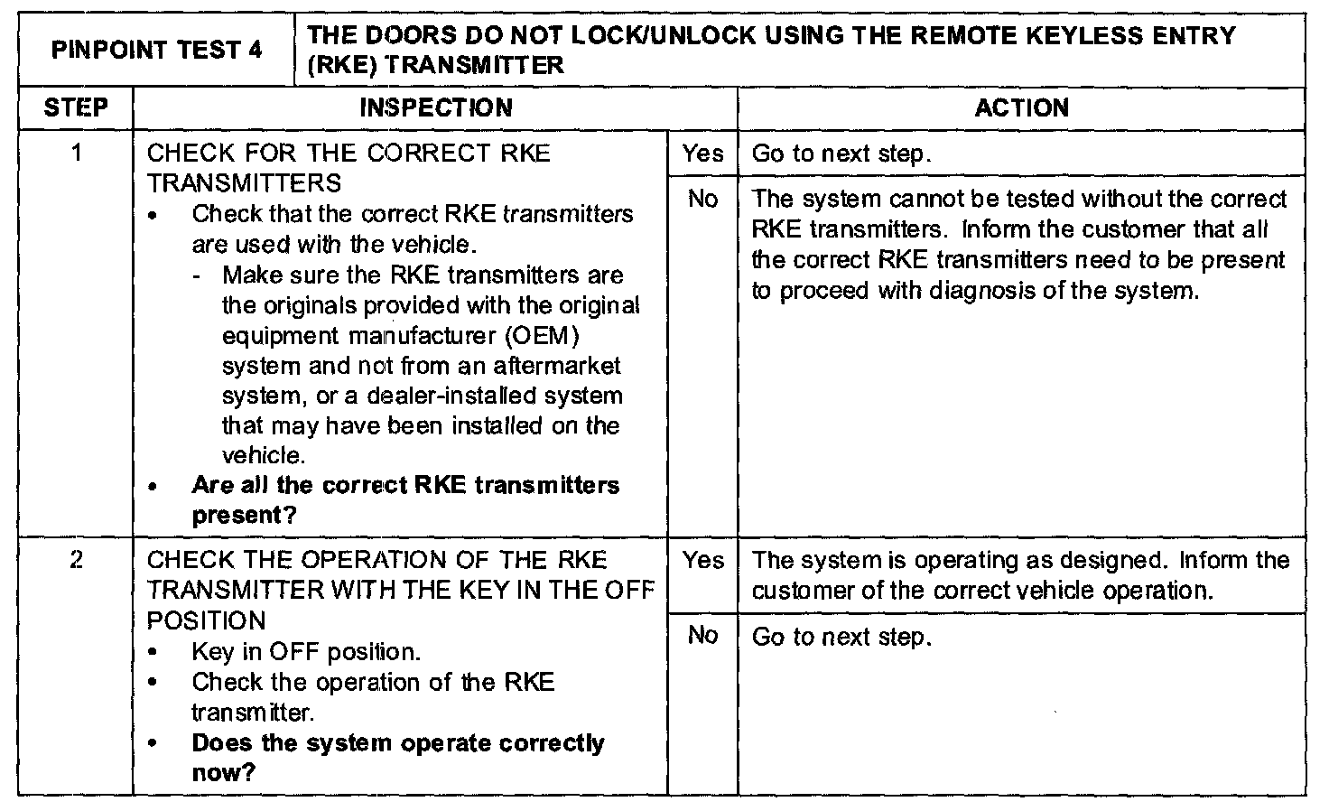 PINPOINT TEST 4: THE DOORS DO NOT LOCK/UNLOCK USING THE REMOTE KEYLESS ENTRY (RKE) TRANSMITTERStep 1-Step 2: