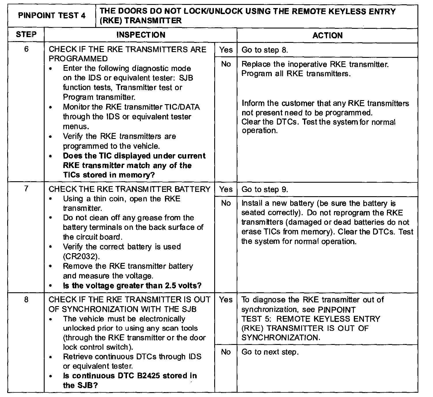 Pinpoint Test 4: The Doors Do Not Lock/Unlock Using the Remote Keyless Entry (RKE) Transmitter