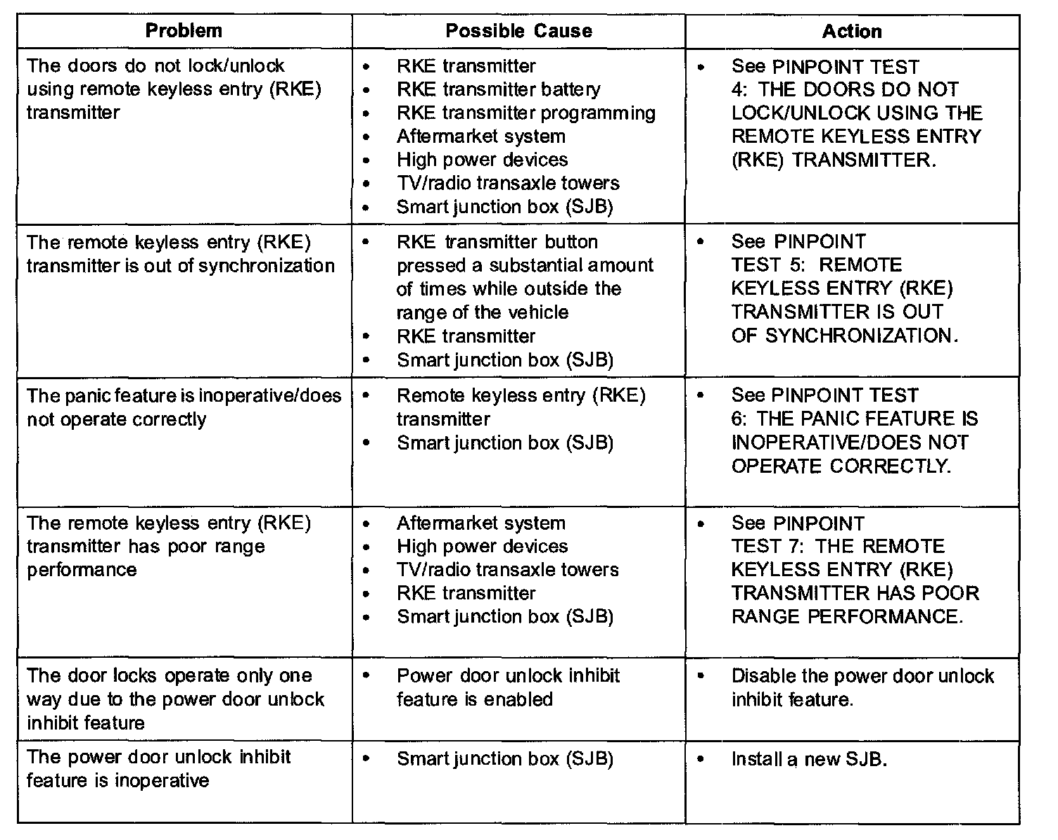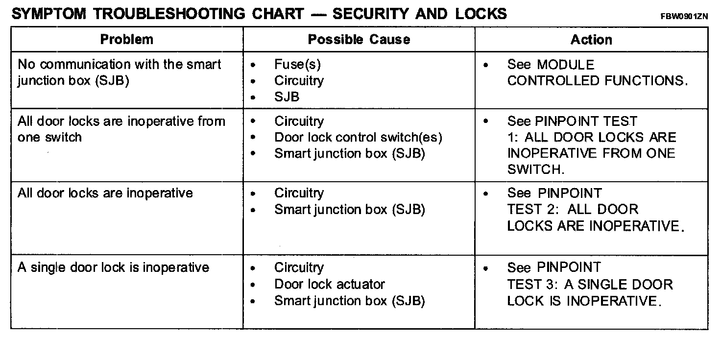 Symptom Troubleshooting Chart - Security And Locks (Part 2):