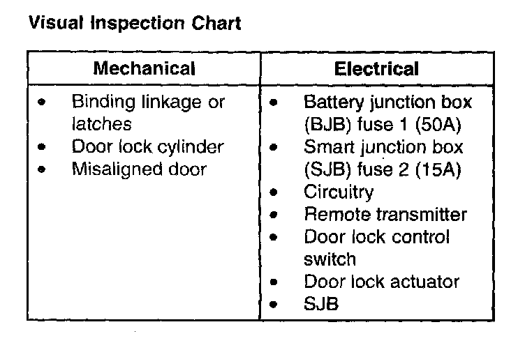 Inspection and Verification1. Verify the customer concern by operating the electronic door lock control system