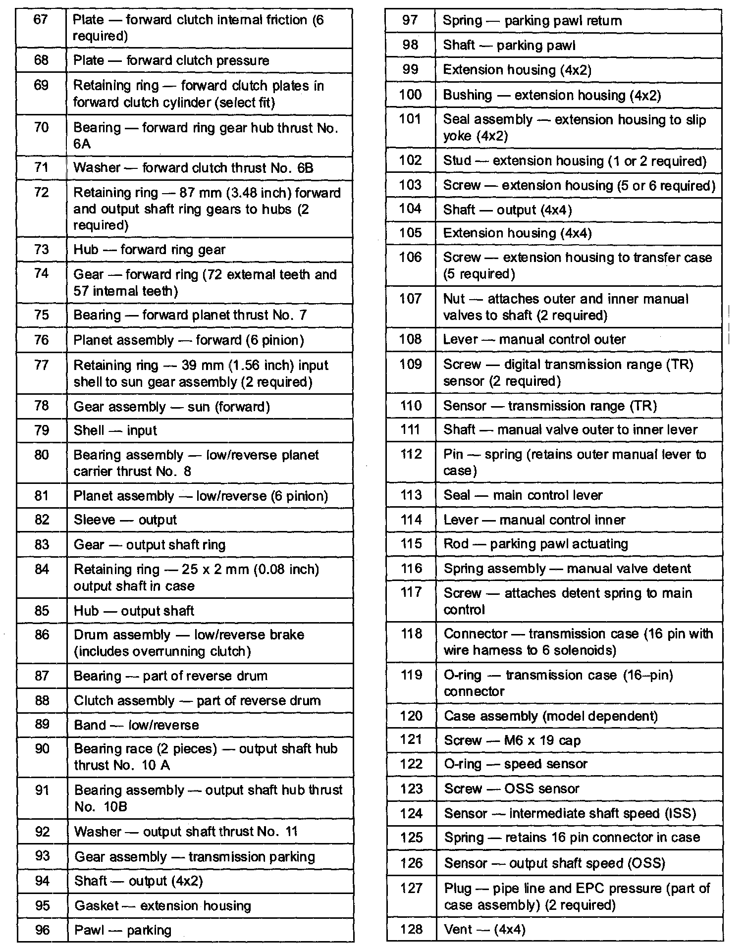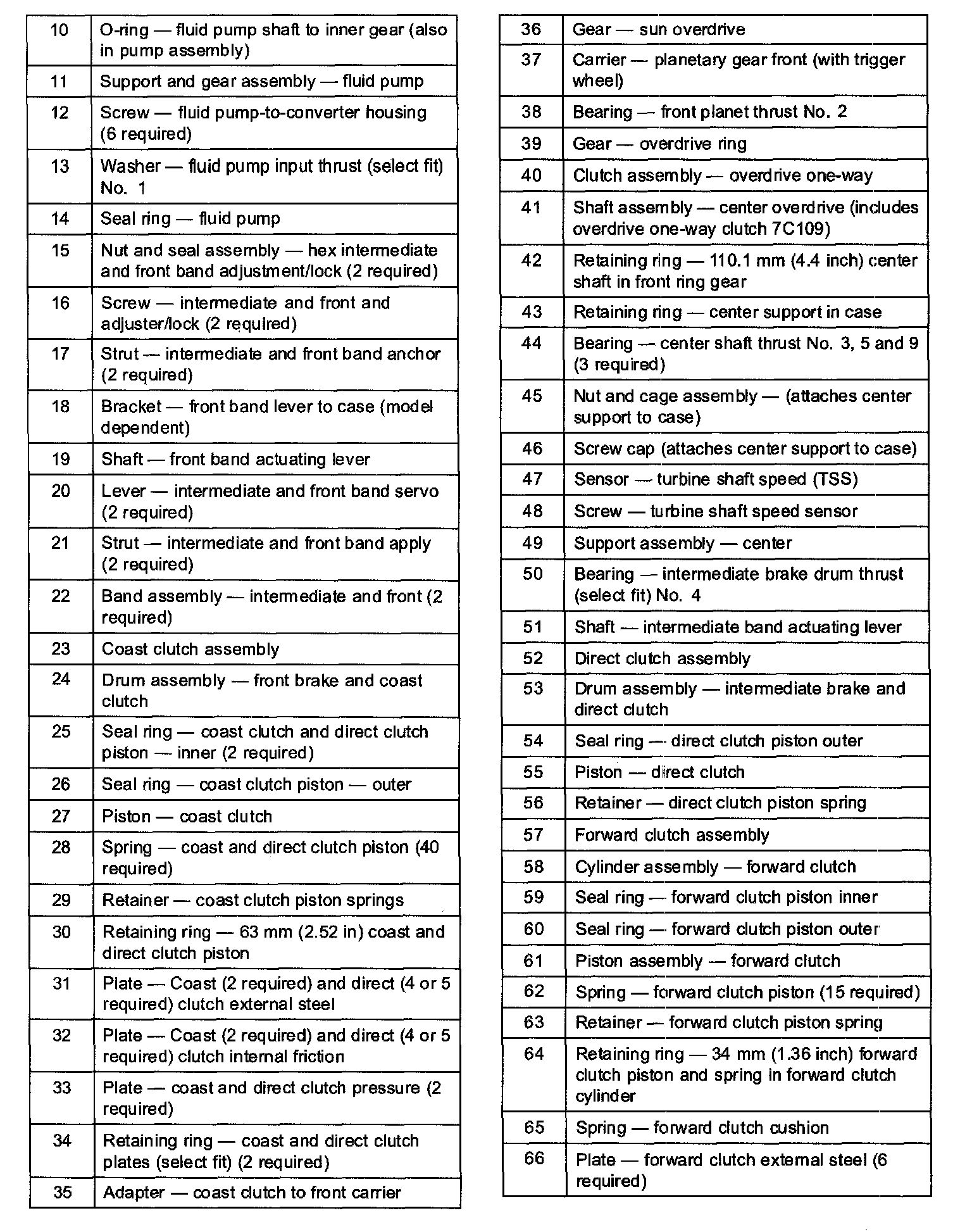 ^ The reverse one-way clutch holds the reverse brake drum and reverse planetary assembly to the case in 1st gear only.