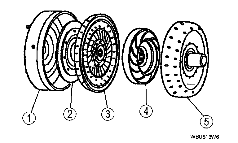 The transmission uses a 4 element torque converter to transmit and multiply torque. It contains the standard 3 elements which transmit and multiply torque: