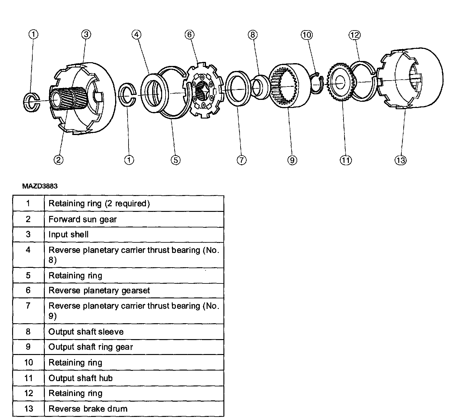 ^ The forward planetary gearset is splined to the output shaft.