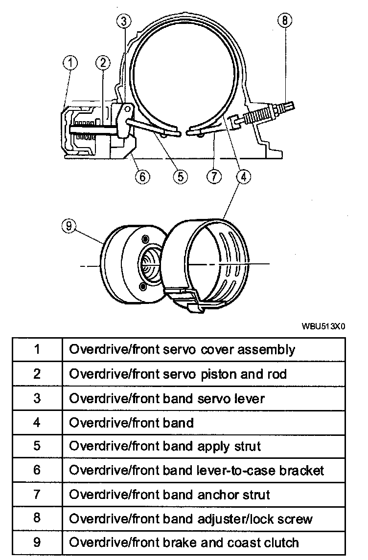^ The front band holds the front brake and coast clutch drum to the case in 2th and 5th gears.
