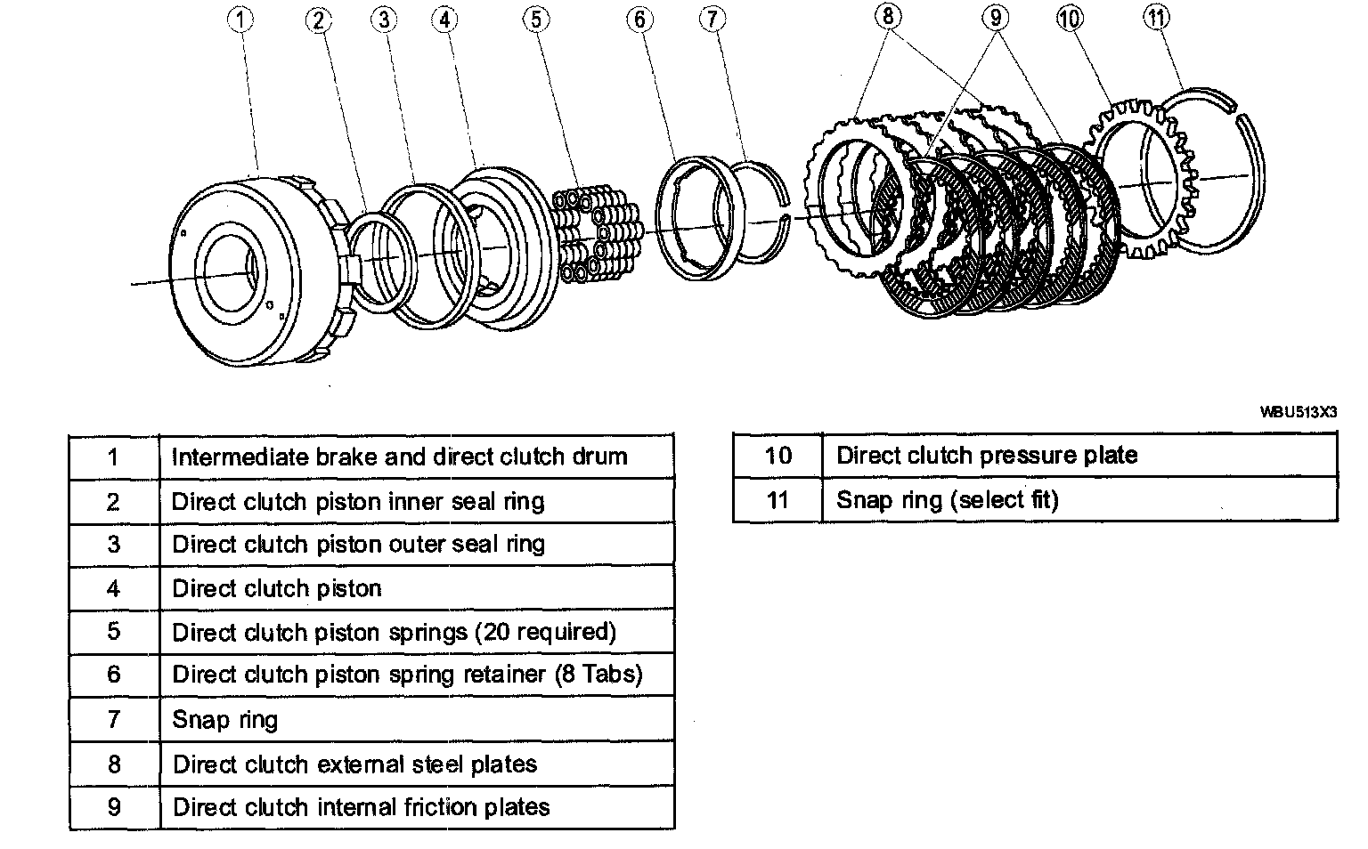 ^ The direct clutch is applied with hydraulic pressure and disengaged by return springs and the exhaust of the hydraulic pressure.