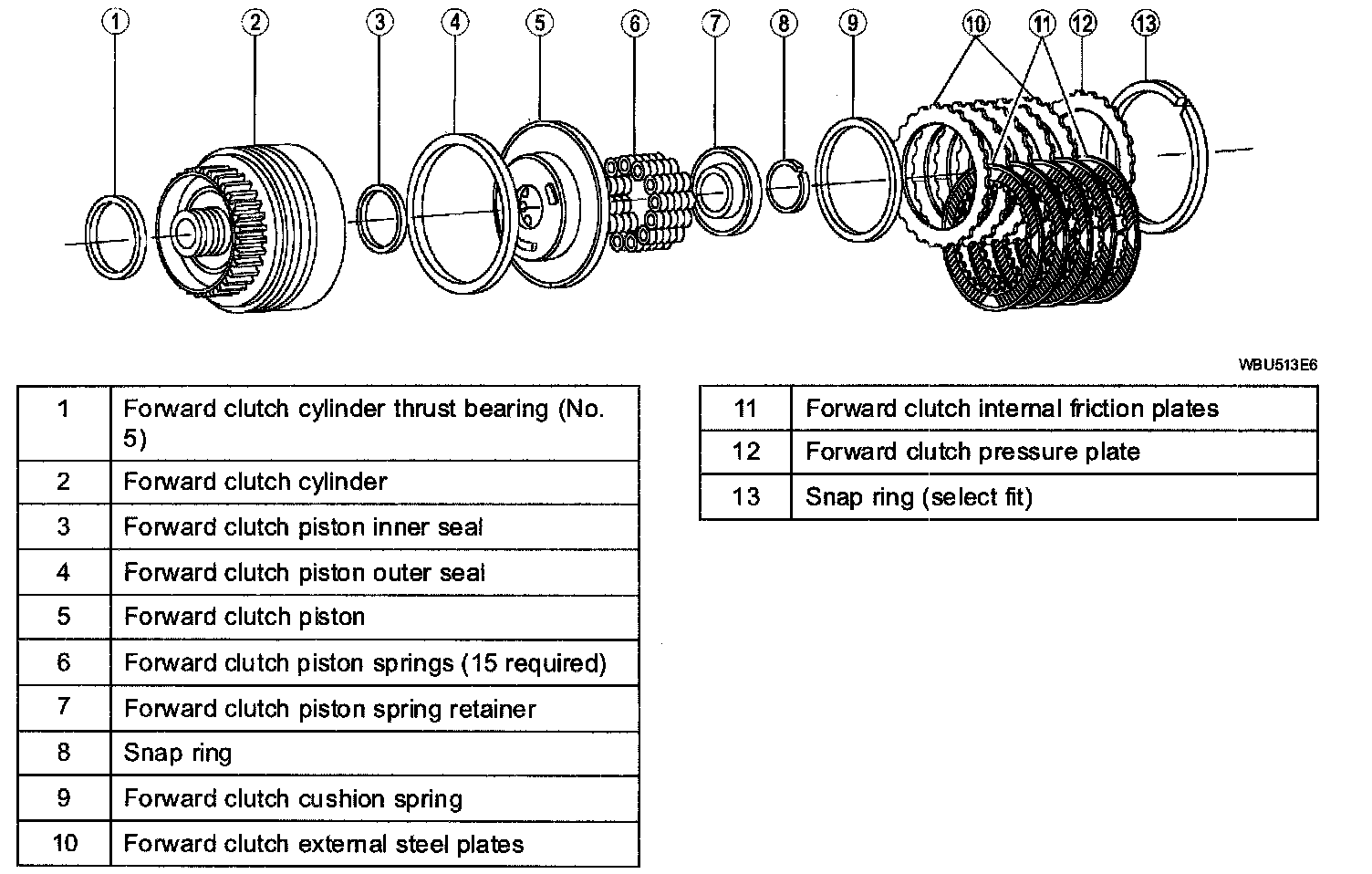 ^ The forward clutch is applied with hydraulic pressure and disengaged by return springs and the exhaust of the hydraulic pressure.