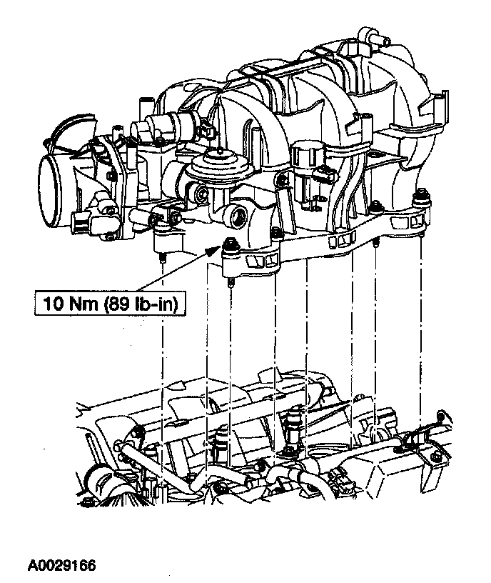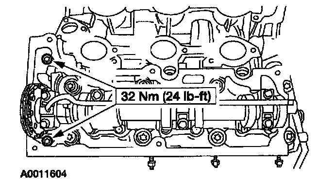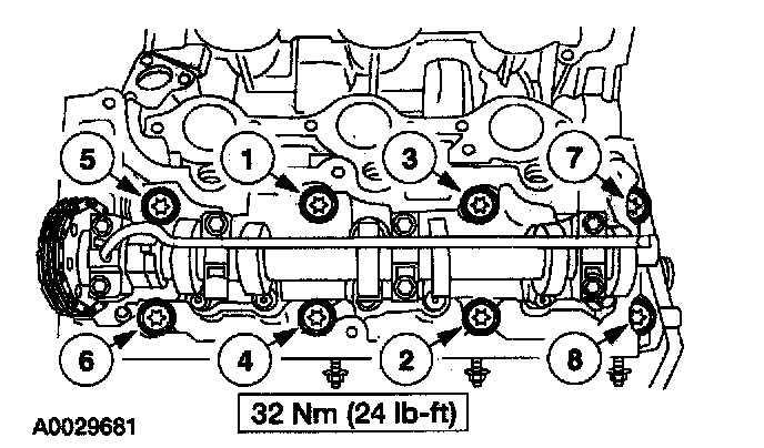 Install the 12 mm (0.47 inch) bolts and tighten in the sequence shown.