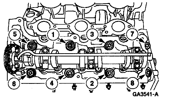 Tighten the eight 12 mm (0.47 inch) bolts in two stages in the sequence shown.