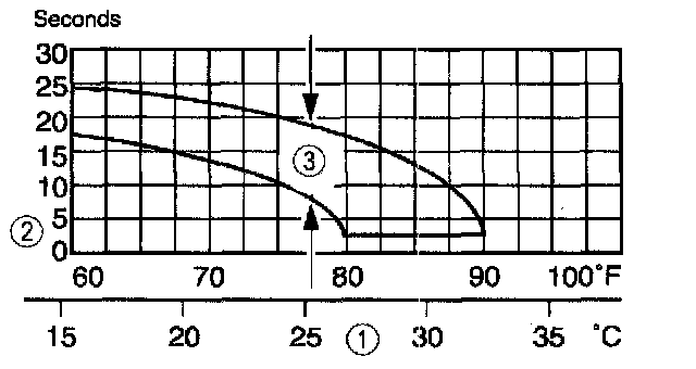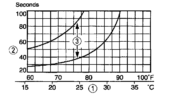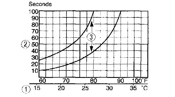 3. The system performance is acceptable when the recorded time falls between the upper and lower limits shown.