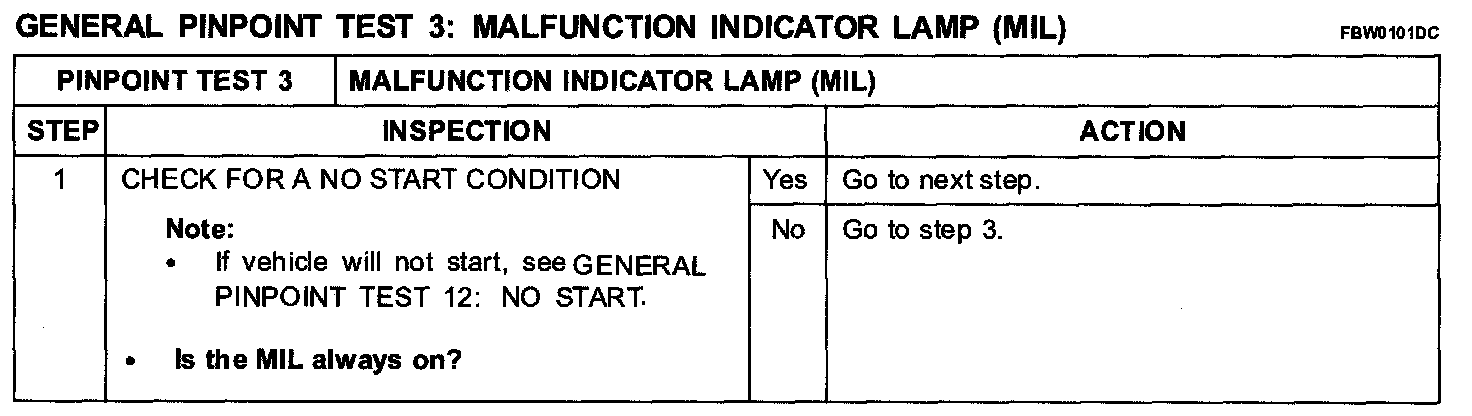 Pinpoint Test 3: Malfunction Indicator Lamp (MIL)