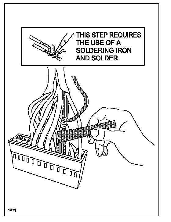 j. Using a razor knife, carefully cut back 1 - 2" of the electrical tape to expose the wiring of the 10-pin connector.