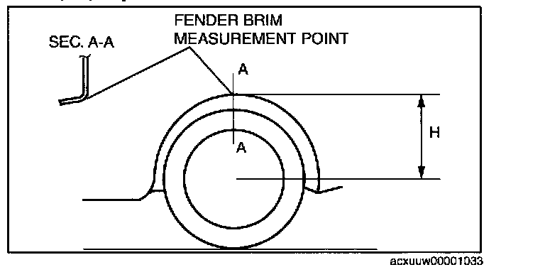 7. Measure height H from the center of the wheel to the fender brim.