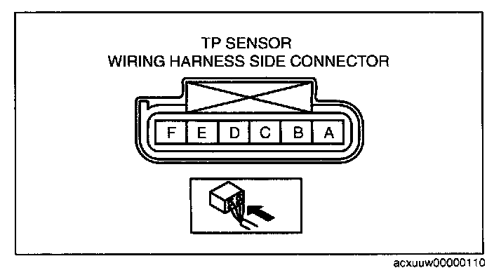 THROTTLE POSITION (TP) SENSOR INSPECTION[L3 WITH TC]NOTE: Before performing the following inspection, make sure to follow the procedure as indicated in the troubleshooting flowchart. (See HOW TO USE THIS MANUAL.)