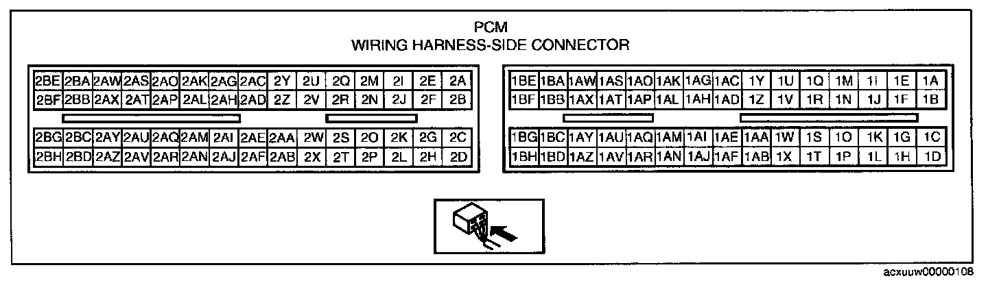 - Throttle body terminal A and PCM terminal 2AK