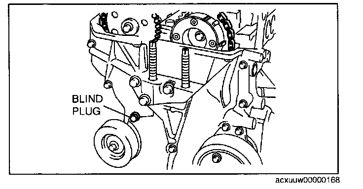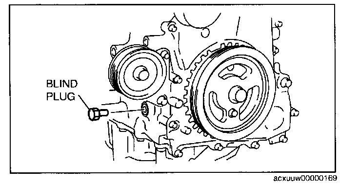 11. Remove the engine front cover upper blind plug.