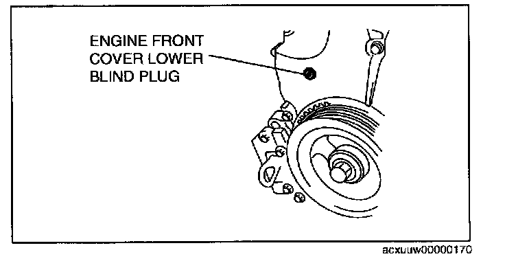 10. Remove the engine front cover lower blind plug.