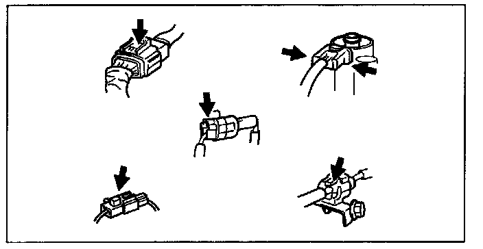 - Before disconnecting connectors or removing electrical parts, disconnect the negative battery cable.