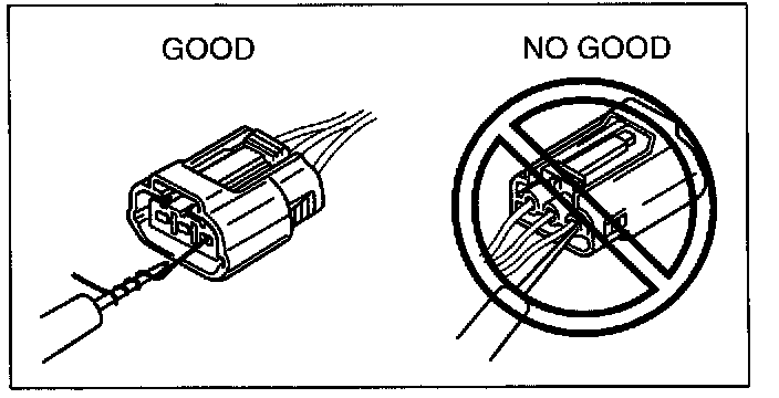 CAUTION: To prevent damage to the terminal, wrap a thin wire around the tester probe before inserting into terminal.