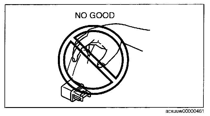 - When a tester is used to inspect for continuity or measuring voltage, insert the tester probe from the wiring harness side.