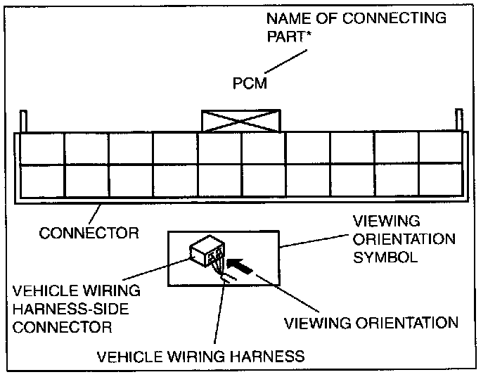 The viewing orientation for vehicle wiring harness-side connectors is from the wiring harness side.