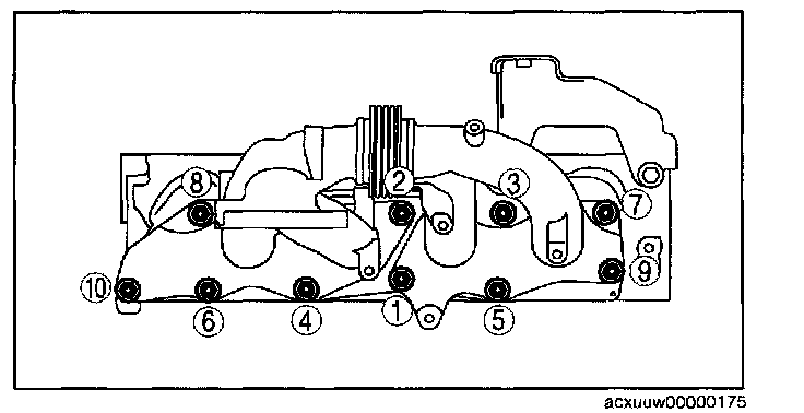 Tighten the exhaust manifold installation nuts in the order shown.