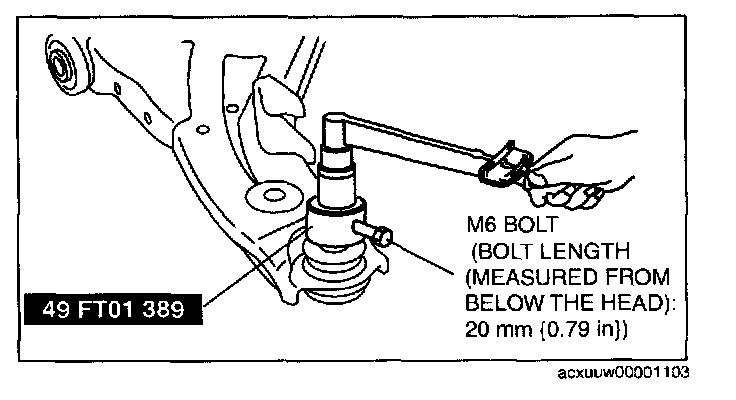 3. Rotate the ball joint stud 5 times. Install the SST and M6 bolt (bolt length (measured from below the head): 20 mm (0.79 in)) to the ball joint stud, measure the rotational torque using a torque wrench.