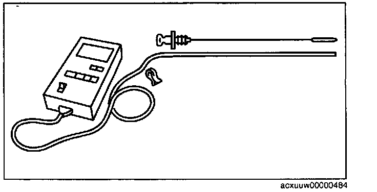 3. Adjust the length or thermometer probe so that the length is the same as the depth gauge, and hold the probe with a paper holder. Insert into the filler tube and measure the temperature. If necessary, inspect the ATF before warming up the engine. In this case, use the ATF temperature (15 - 25° C (59 - 77° F)).