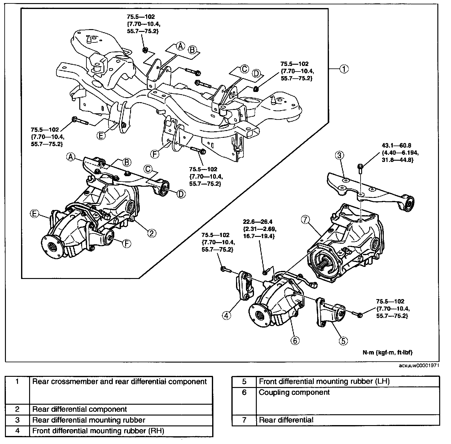 REAR DIFFERENTIAL REMOVAL/INSTALLATION1. Drain the rear differential oil into a container.