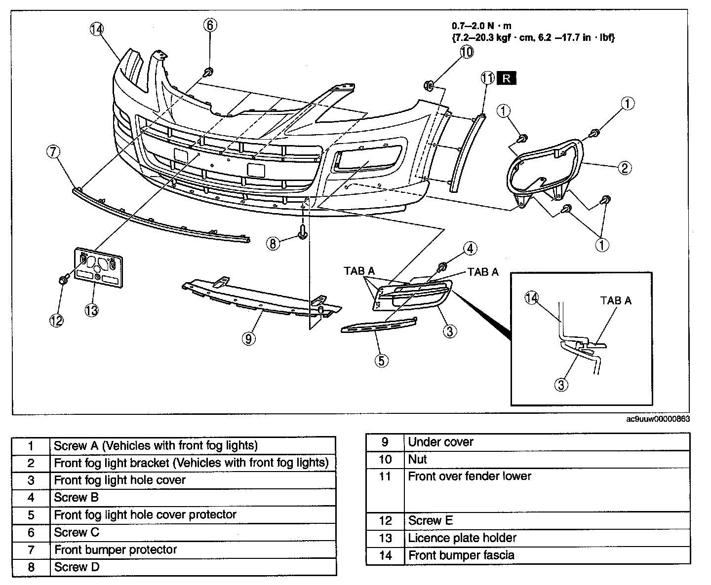 FRONT BUMPER DISASSEMBLY/ASSEMBLY1. Remove the front fog light. (Vehicles with front fog lights).