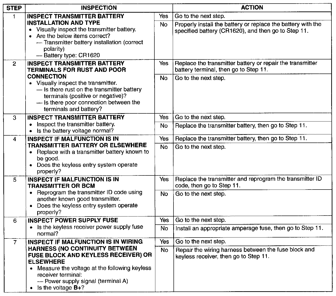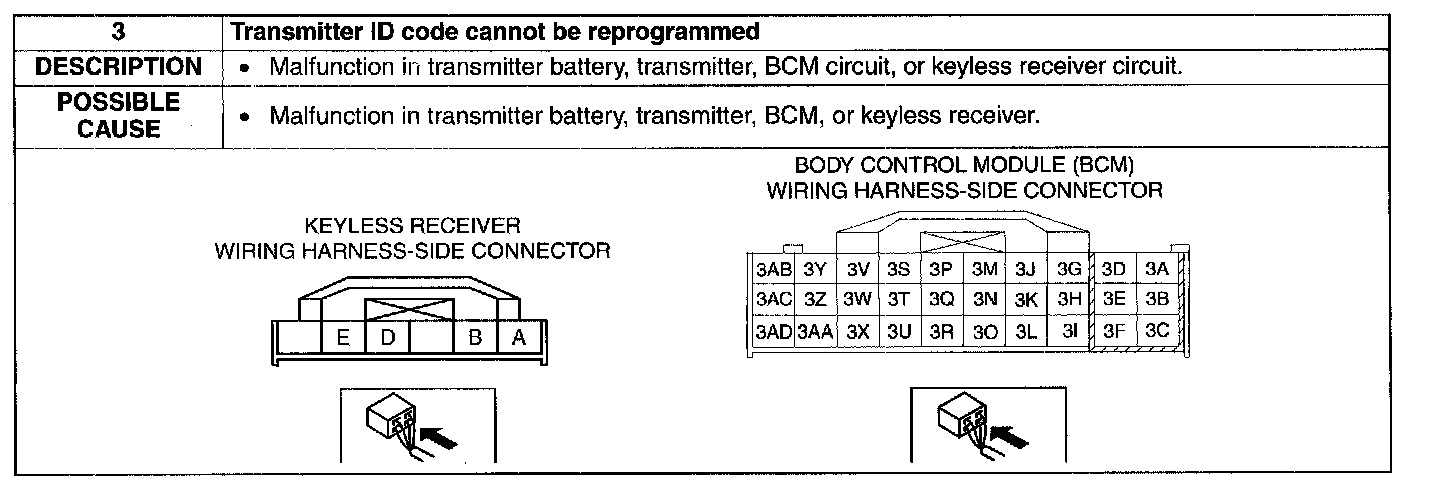 No.3 Transmitter ID Code Cannot Be Reprogrammed (Keyless Entry System)