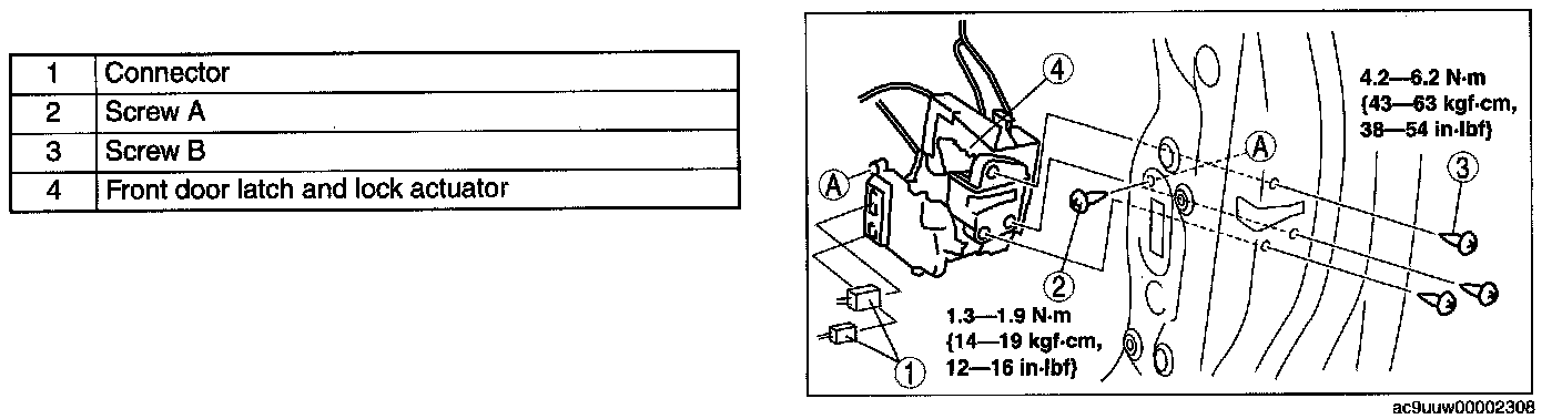 FRONT DOOR LATCH AND LOCK ACTUATOR REMOVAL/INSTALLATION1. Disconnect the negative battery cable.