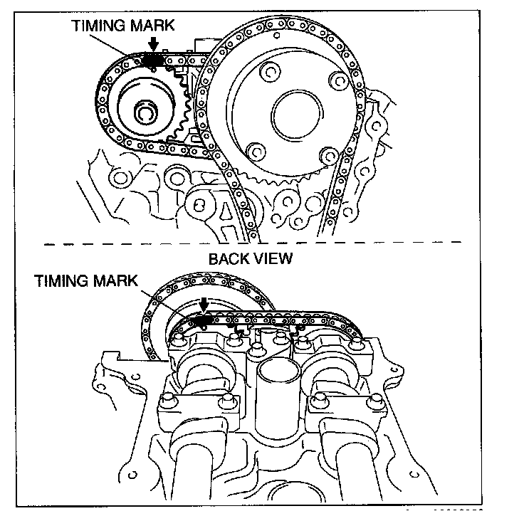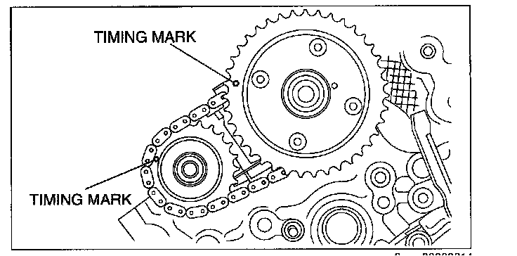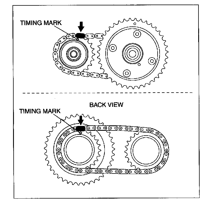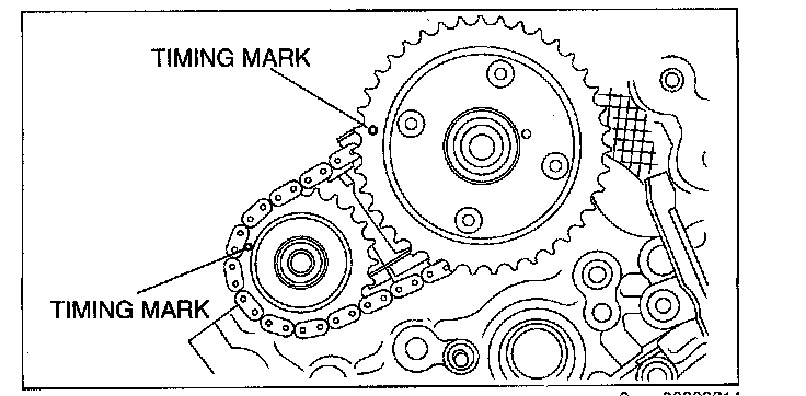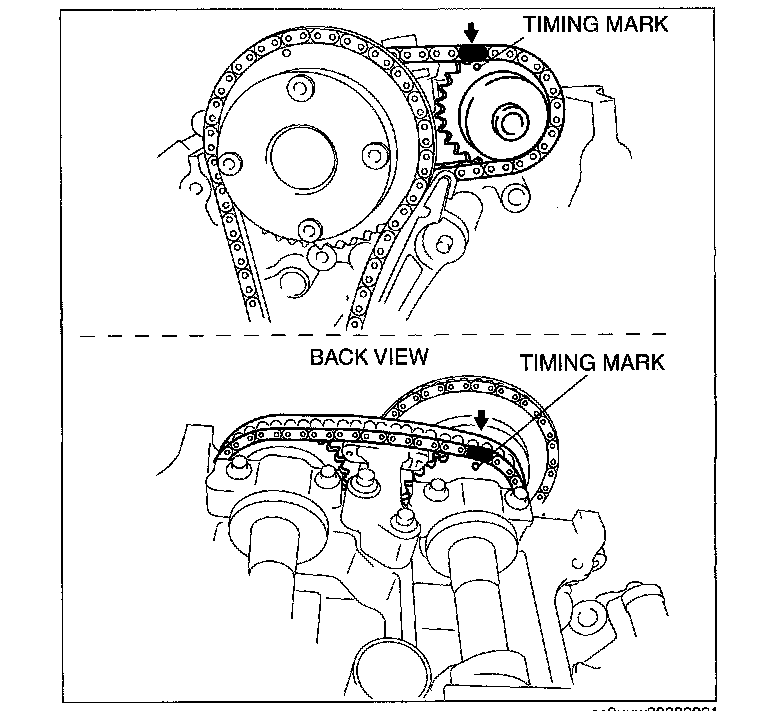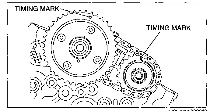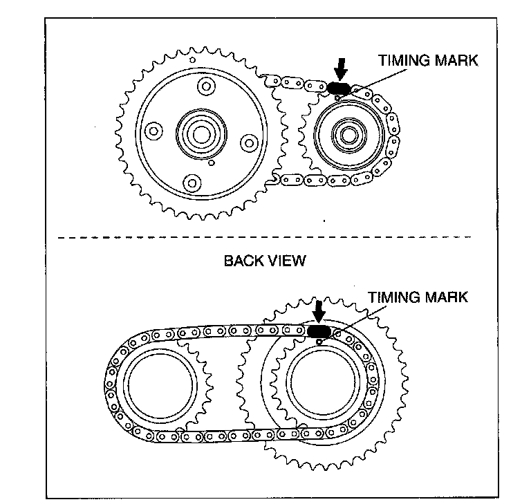 2. Mark the timing chain at the position of each timing sprocket timing mark.