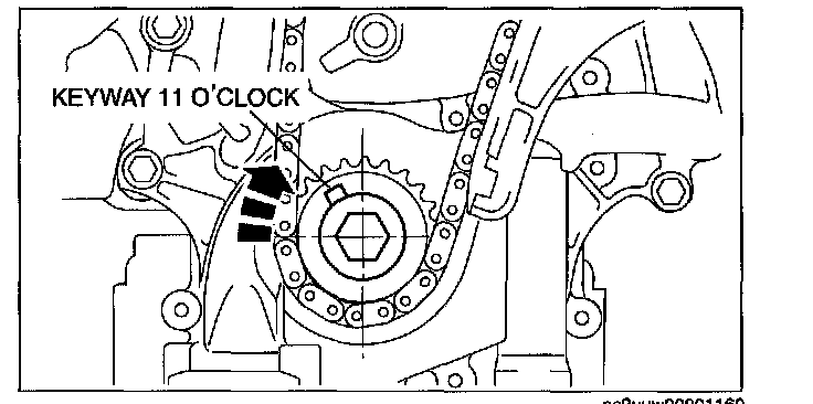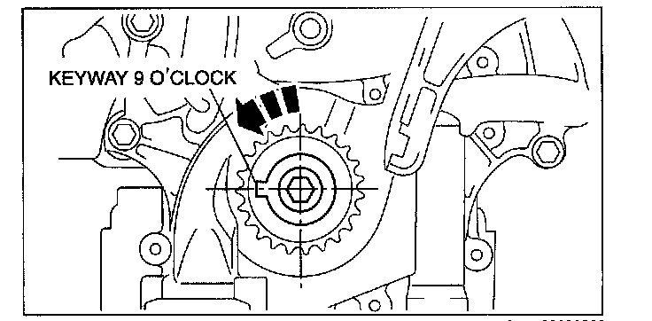 1. Turn the crankshaft clockwise so that the crankshaft keyway is in the 11 o'clock position. (This will position the No.1 cylinder at TDC.)