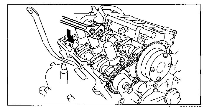 ^ Verify that there are timing marks in two locations on the camshaft timing chain. If any timing marks are missing, mark the camshaft timing chain.