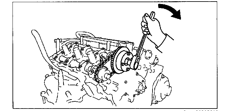 5) Using the RH bank camshaft sprocket installation bolt at the position shown in the figure, rotate the RH bank camshaft clockwise.