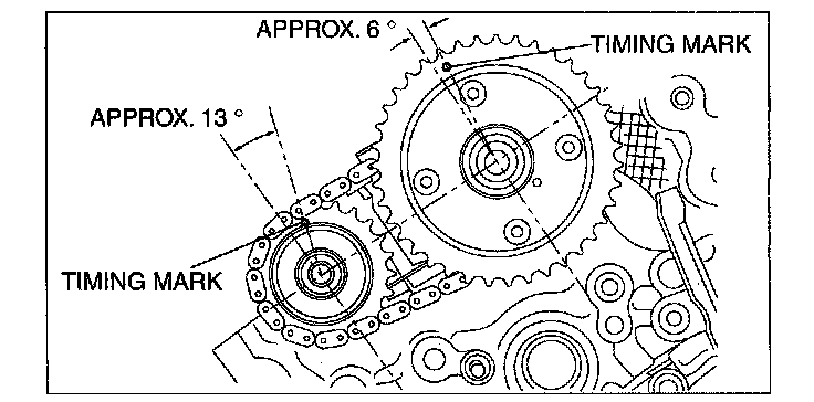 ^ When removing the timing chain and marking the timing marks on the chain, mark the camshaft timing chain as well.