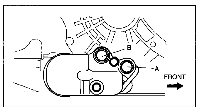 6. Tighten the bolts on the No.1 engine mounting bracket in the order of A, B.