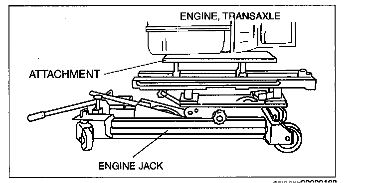 1. Secure the engine and transaxle using an engine jack and attachment.