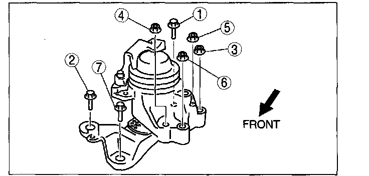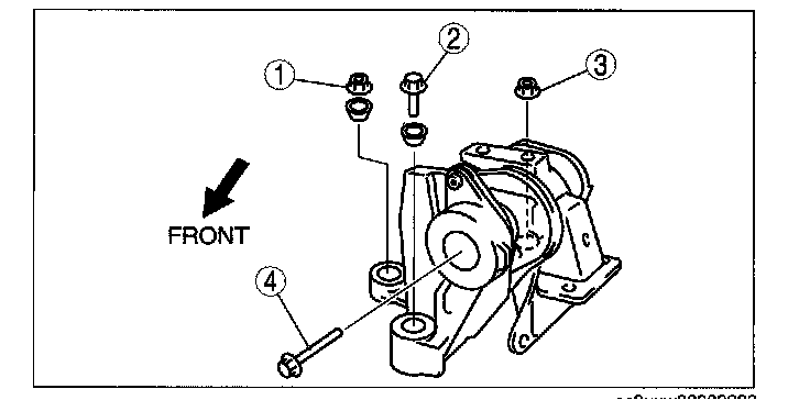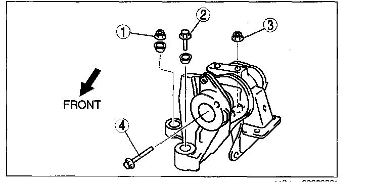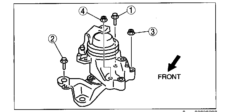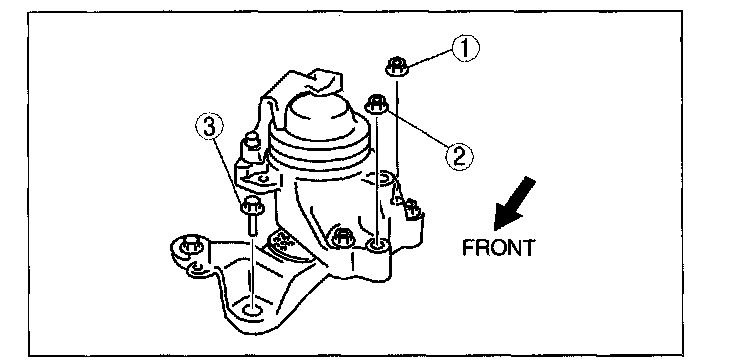 3. Temporarily tighten the No.3 engine mount bolts and nuts in the order shown in the figure.