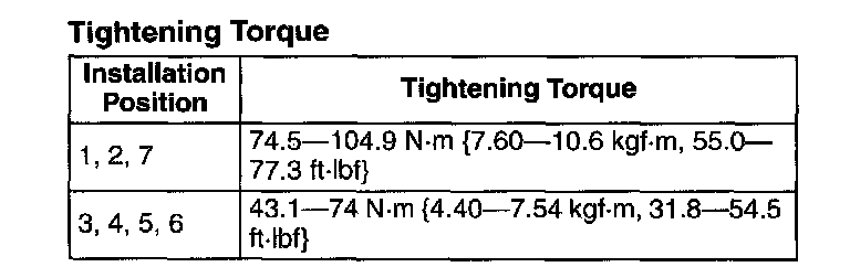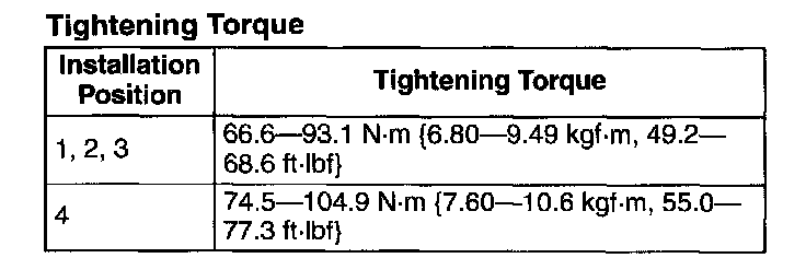 Tightening torque 93.1-116.6 Nm (9.50-11.8 kgf-m, 68.7-85.9 ft-lbf)
