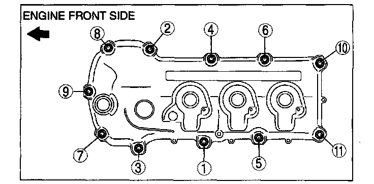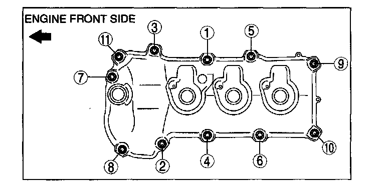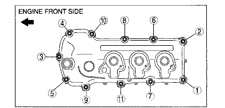 1. Remove the cylinder head cover bolts in the order shown.