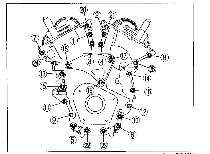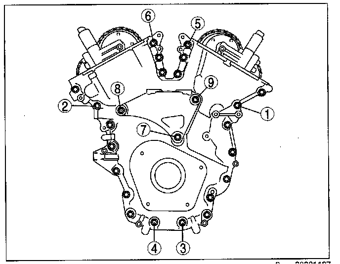 2) Tighten the engine front cover installation bolts in the order in 2 steps in the order shown in the figure.