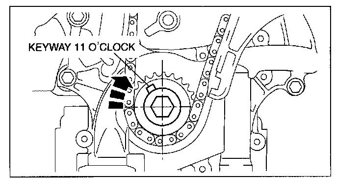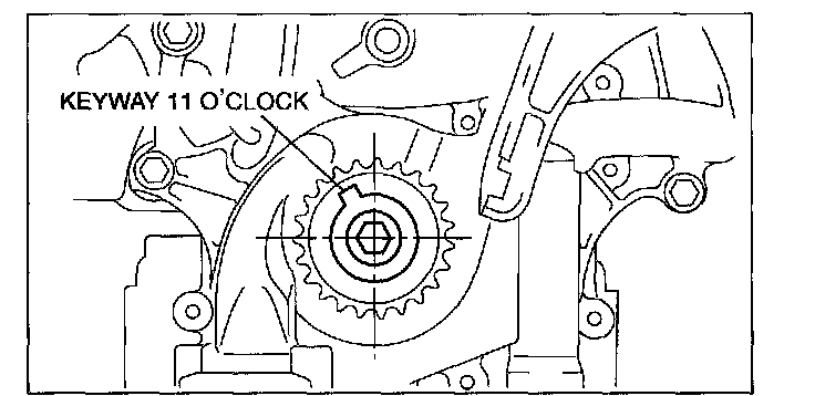 1. Turn the crankshaft clockwise so that the crankshaft keyway is in the 11 o'clock position. (This will position the No.1 cylinder at TDC.)